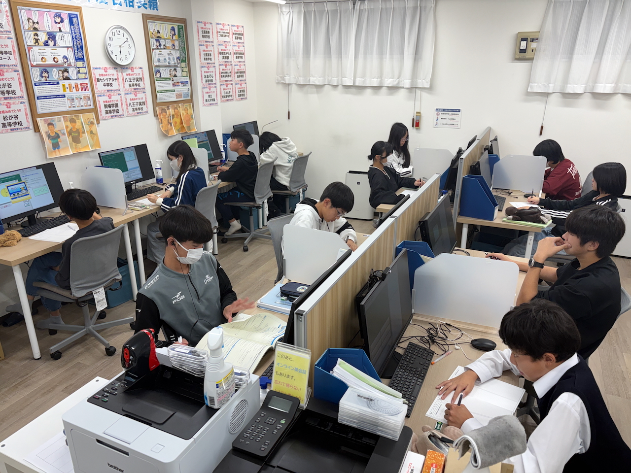 自習室教室が開いている時間帯であれば、いつでも利用可能です。塾生のお友達であれば、その方も利用可能です。