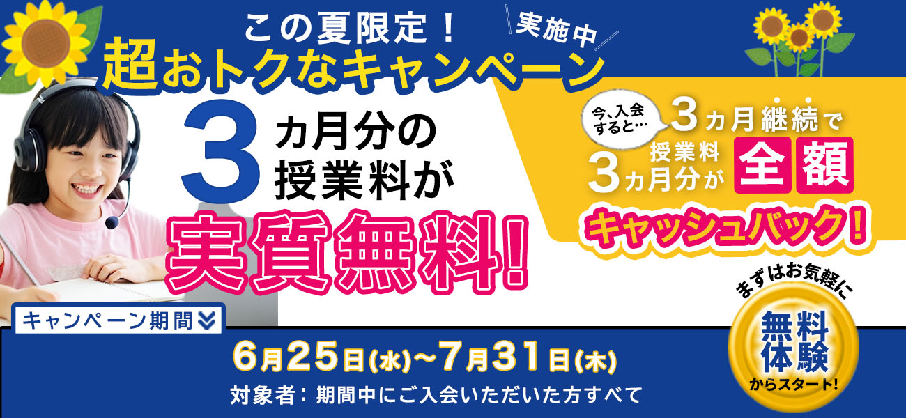 3000円分の入塾お祝い金プレゼント!