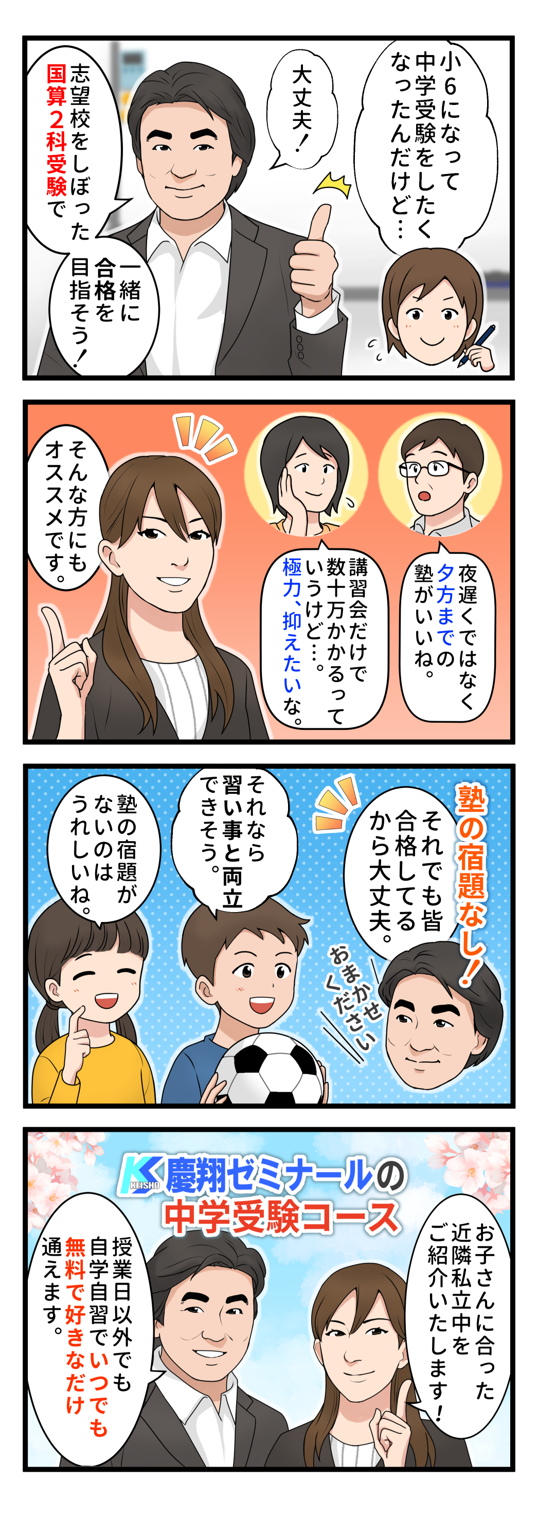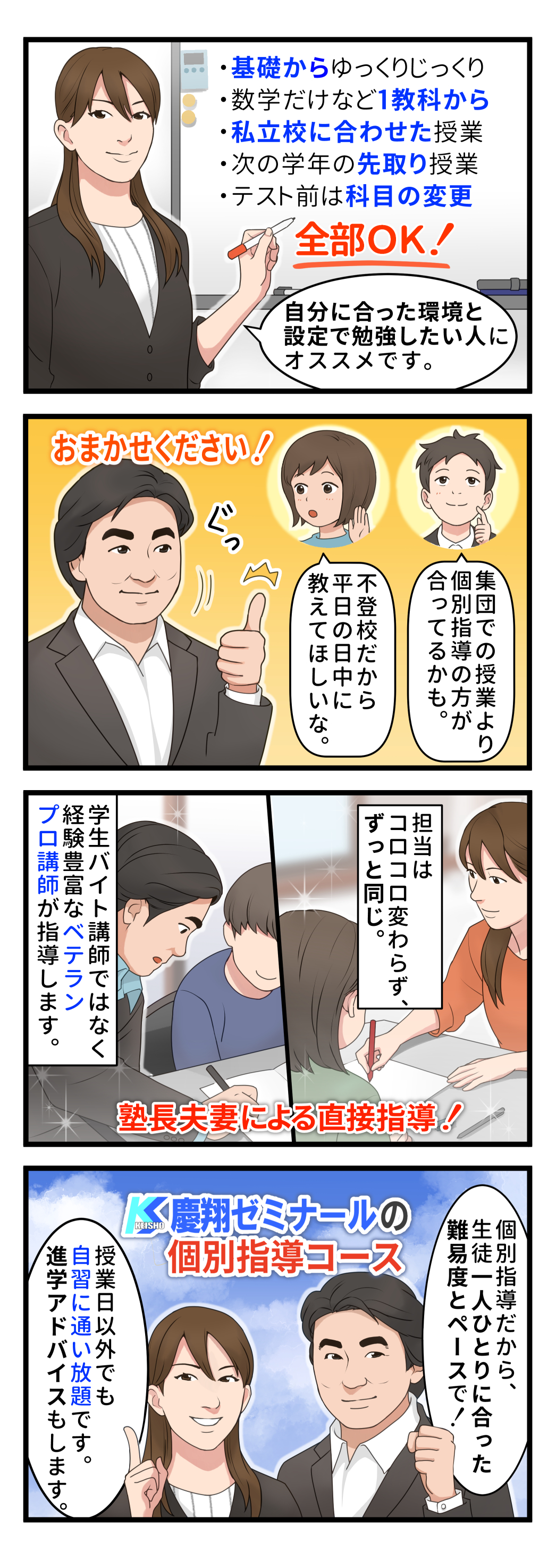 第一志望が一人ひとりのトップ校。塾長夫妻による直接指導の個別コース。小6からの中学受験対応。