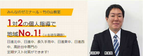 そうした指導の結果、これまで、みんなのゼミナール竹の山教室は、日進北中、日進中、長久手南中、日進東中、日進西中、高針台中に通う、日進、長久手、竹の山、岩崎、名東区、極楽、香久山にお住いの多くのお子さんの成績を上げてきました。