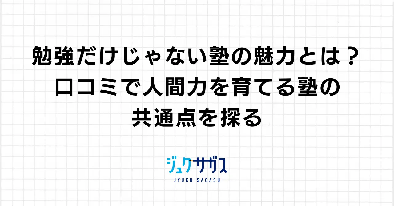 塾で人間力を育てるという視点 「この塾、勉強以外も教えてくれる」一見すると学習塾の口コミとしては意外に思えるこの言葉。しかし、多くの保護者が高く評価しているのは、成績の上昇だけでなく、子どもの挨拶、礼儀、時間管理、他者との接し方といった人としての成長です。 本記事では、口コミに現れる「人間力育成」という側面に注目し、ど…