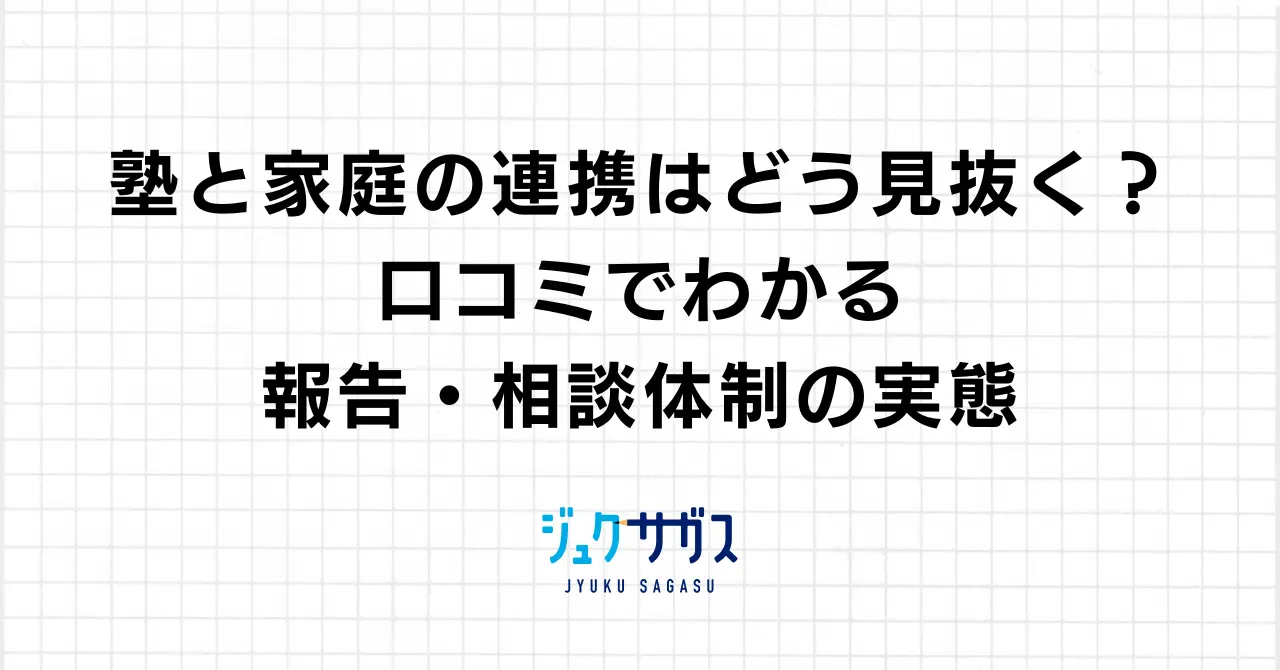 子どもの学びを支えるうえで、塾と家庭の連携は欠かせません。授業が終わればそれでおしまい、という関係ではなく、家庭としっかり情報を共有し合う体制がある塾は、子どもの成長にも安心にもつながります。しかし、その体制はなかなか外からは見えにくいもの。そこで注目したいのが「口コミ」です。口コミには、塾と家庭がどのようにやり取りを…