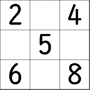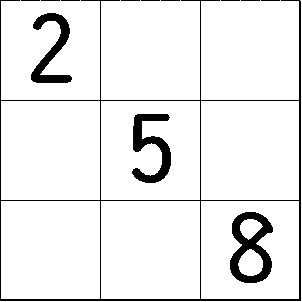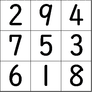 この枠内に1桁の自然数を一回づつはめて、縦横斜めどの列も