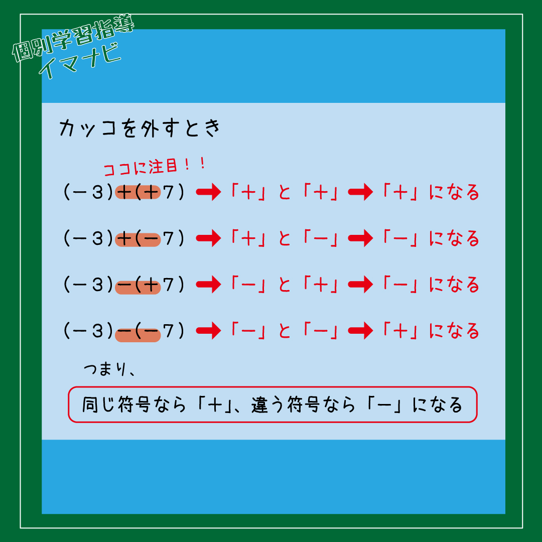 つまり、同じ符号なら「+」、違う符号なら「-」になる!