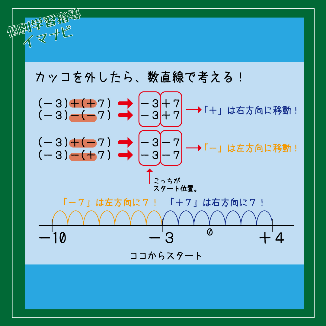 -3+7 → -3からスタートして右方向に7 → つまり+4