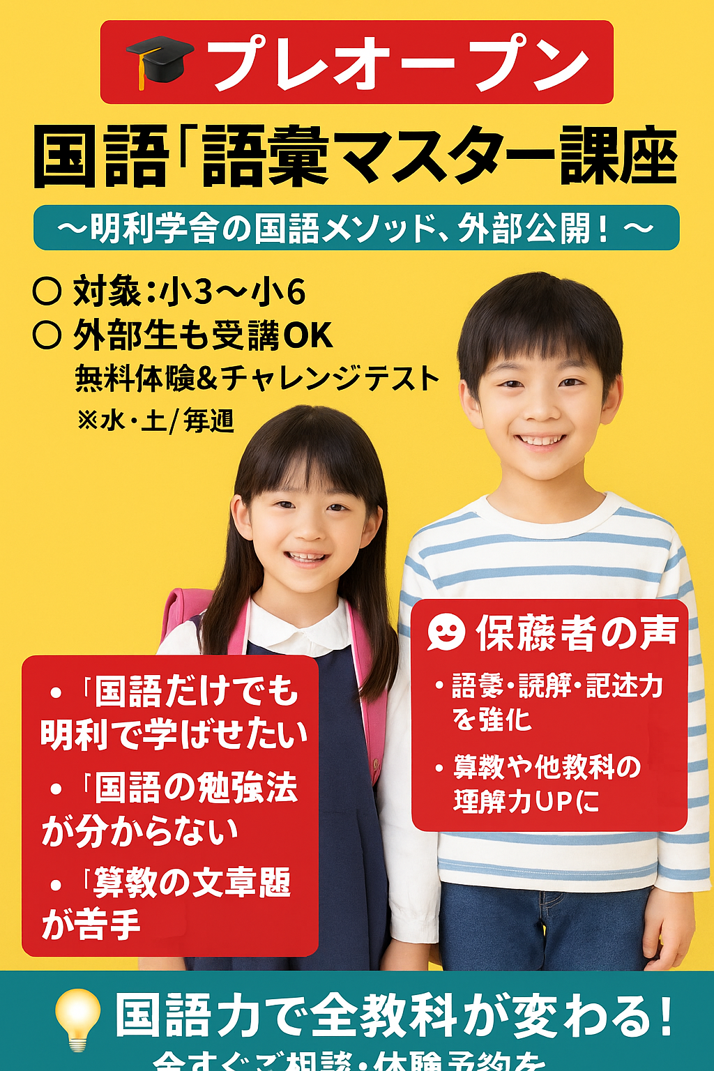 中学受験・非受験に関わらずで『国語力=語彙力・記述力・読解力・イメージ力】が弱く成績伸び悩みのお子様へ朗報!