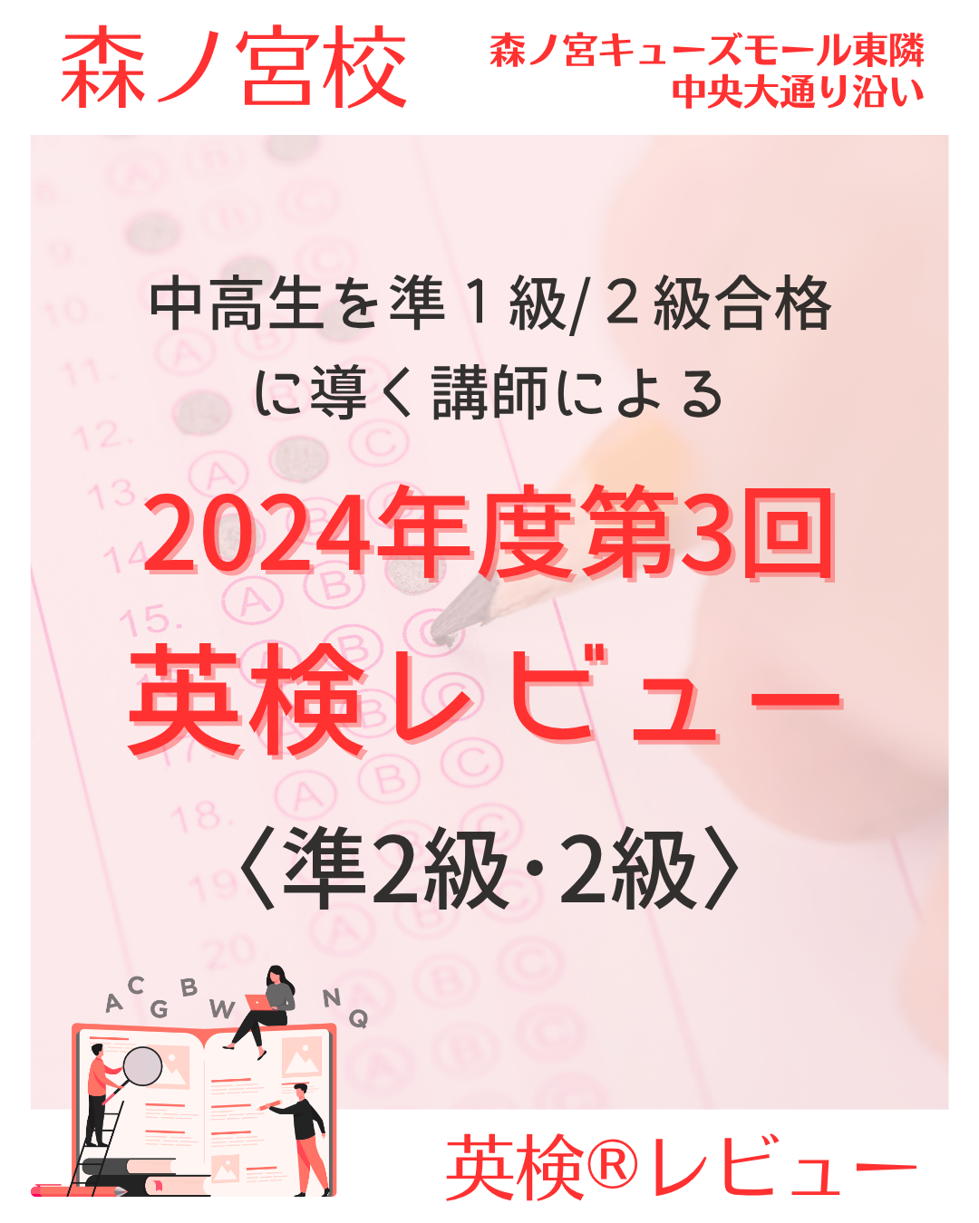 第3回英検(1月25日実施分)について過去問と難易度を比較しました。今回は 準2級・2級編 です。著作権の関係で具体的な問題内容については記述できませんが、英検合格に向け、過去問に取り組んでいる方の参考になれば幸いです。今回も分析したのは英会話担当の金原。中学生・高校生を準1級/2級合格に導く当教室自慢の講師です!