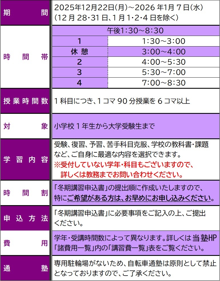 毎年大好評の「東武個別の冬期講習」のお申込受付が、いよいよスタートしました!