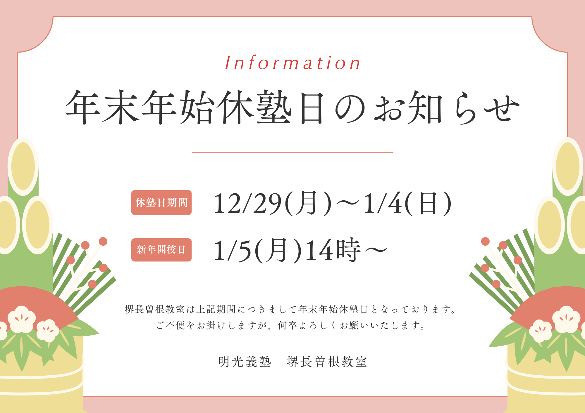 年末年始休塾日のお知らせ