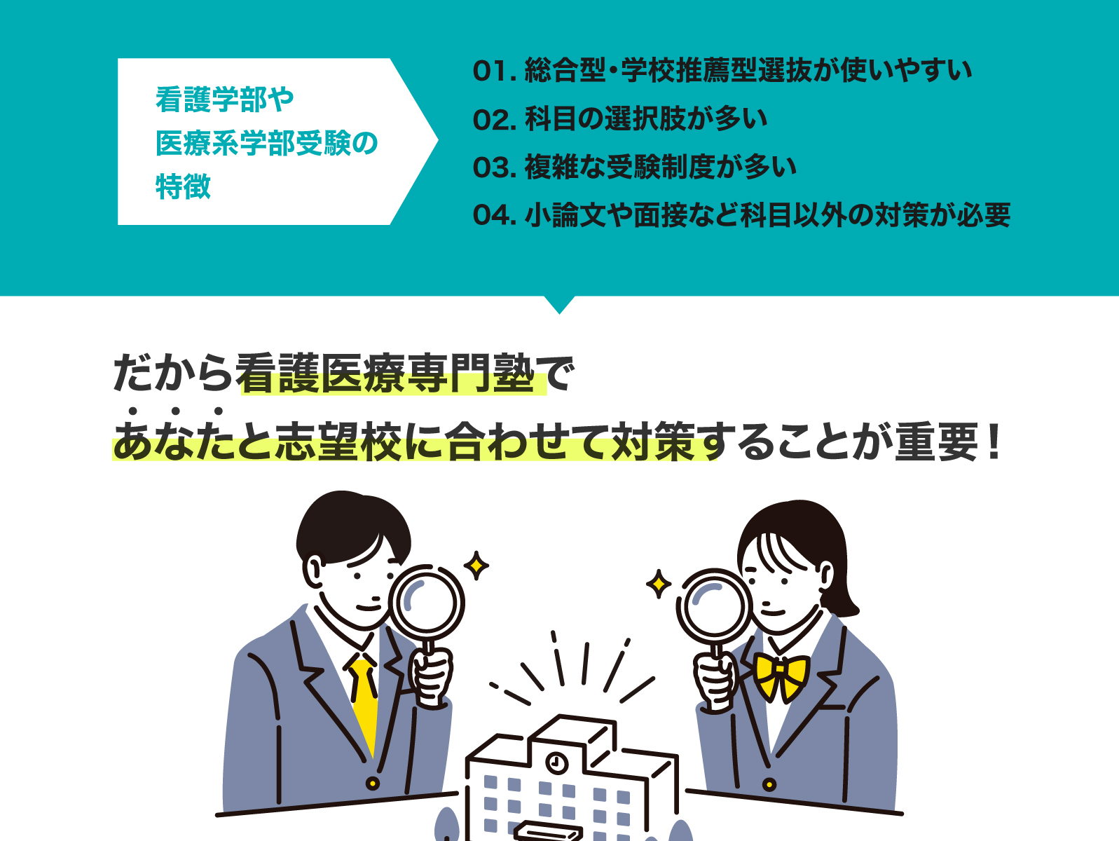 全国の皆さん、こんにちは! 看護医療専門予備校 看医塾です。 新教育課程で情報の授業が新しく導入され、ITリテラシーやプログラミングの基礎を学ぶ機会が増えました。 しかし、「どうやって勉強すれば良いのか分からない」と感じる人も多いと思います。 今回は、情報の勉強法について一例を紹介します。 ①基礎から始める →プログラミングの基礎を理解する まずは、プログラミングの基本概念を理解することが重要です。 変数、ループ、条件分岐などの基本的な構造を学びましょう。 おすすめのサービス ・Codeacademy:無料で基本的なプログラミングを学べるサイト。 →情報リテラシーを身につける 情報の授業では、コンピュータの基本操作やインターネットの利用方法についても学びます。 これらのスキルは、日常生活や将来の仕事でも役立ちます。 頑張って身につけましょう! ②実践を通じて学ぶ プログラミングは実際にコードを書いて、手を動かすことが非常に重要です! 簡単なプログラムを作成し、段階的に難易度を上げていきましょう。 エラーを解決するプロセスを通じて、実践的なスキルが身につきます。 おすすめのサービス ・Progate:基礎レベルは無料で学べるサイト。 ・LeetCode:プログラミングの問題を解くことができるサイト。 ③継続的な学習 ITの世界は日々進化しています。 最新の技術動向を追うことで、自分のスキルを常にアップデートすることができます。 ブログ、ニュースサイト、ポッドキャストなどを定期的にチェックすることもおすすめです。 おすすめのサービス ・TechCrunch:最新の技術ニュースを提供するサイト。 ・TheVerge:テクノロジーに関するニュースやレビューを掲載。 終わりに 情報の授業は、未来のデジタル社会で重要なスキルを身につけるための第一歩です! 基礎をしっかり学び、実践を通じてスキルを磨き、最新の情報を追い続けることで、効果的に勉強を進めることができます。 看医塾では、「受験戦略」や「受験校戦略」を通じて、志望校合格に必要な科目の配点比率を計算し、学習計画を組み立てます。 そして、アウトプット型の科目授業で、生徒の習熟度を確認し、必要であれば計画へのフィードバックを実施します! 科目授業は、数学や英語だけでなく、全科目対応をしているので、新教育課程で追加された情報科目についても安心してお任せください!