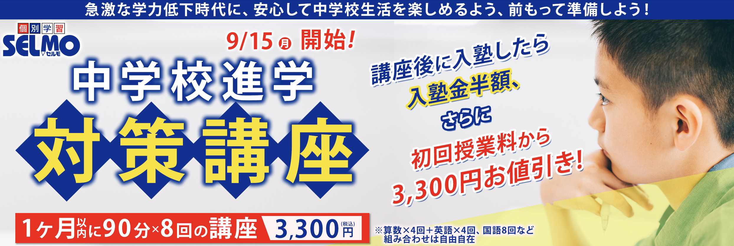 各種特典は、初めてセルモにご入塾される方が対象です。