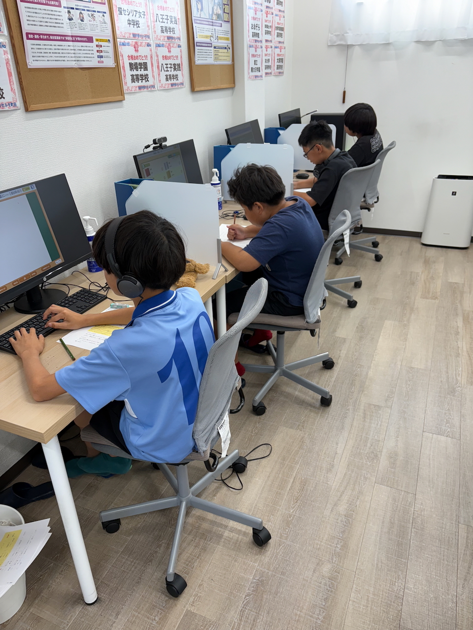 自習室教室が開いている時間帯であれば、いつでも利用可能です。塾生のお友達であれば、その方も利用可能です。