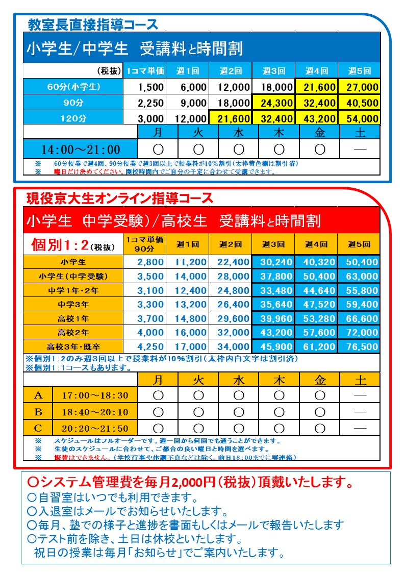 他塾様の指導方針、成績伸長率と料金総額を比べてご検討くださいませ。