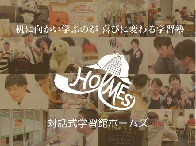 代表が学生時代から、公立トップ高合格数No.1の集団指導塾や、教室数100を超える個別指導塾、人間教育に力を入れる地域No.1塾、全国有数の予備校などで勤務し、全力で指導しながら蓄積してきたノウハウや改善点を形にて、2013年に創立したのが、対話式学習館ホームズです。
