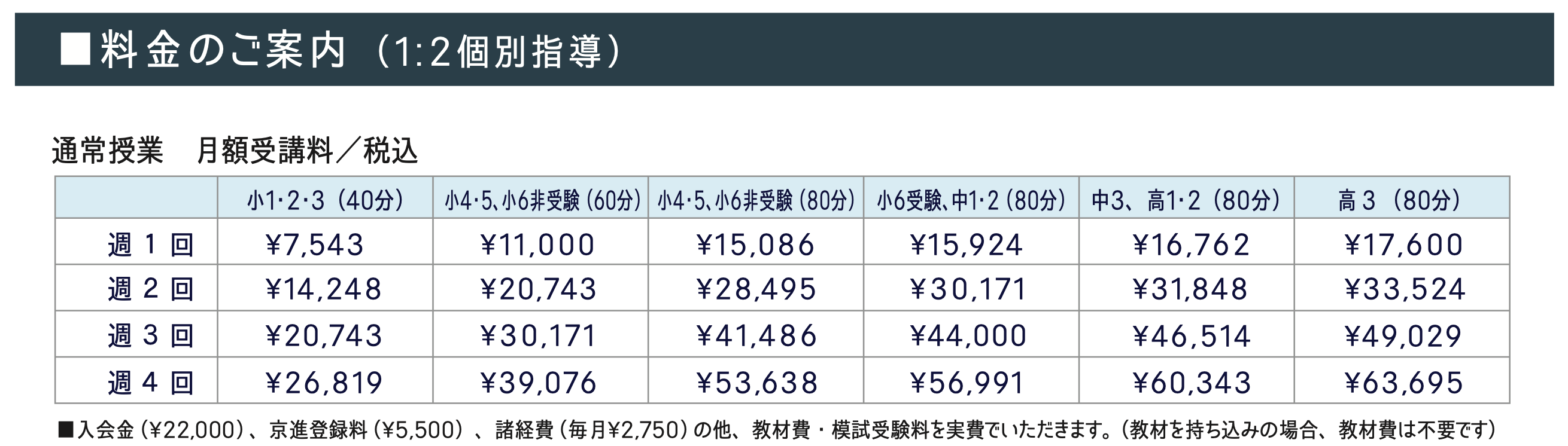 夏期講習・冬期講習・春期講習も完全1対2、受験対策講座「実戦トライアル」は完全1対1です。