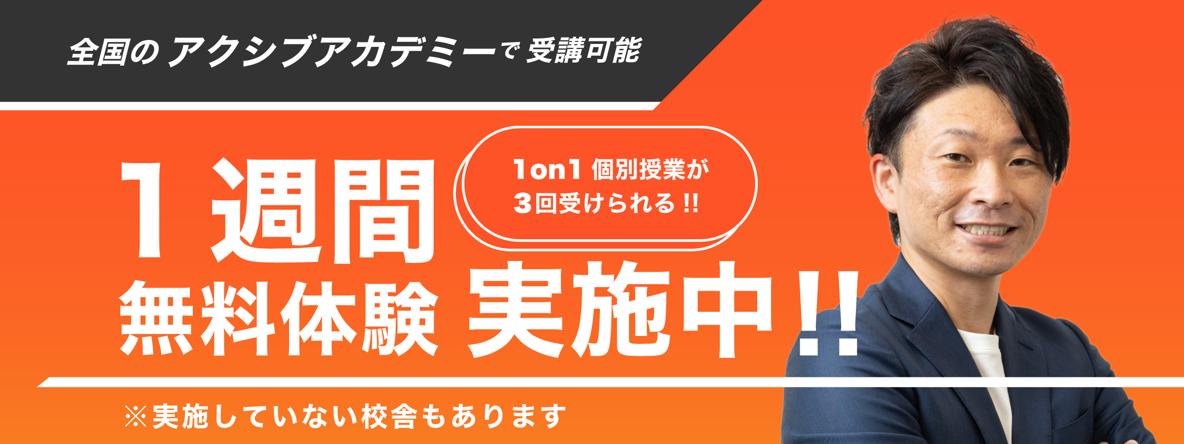 1週間無料体験を実施しておりますので、まずは1週間無料体験を受講ください。