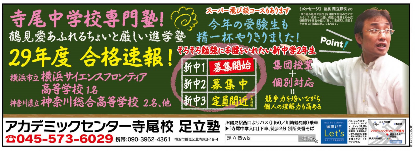 個別学習のセルモ東寺尾教室と申します。 当教室の学習方針は、「徹底した問題演習」で学力向上。 単なる「座学」で分かった気にさせない。問題を解く力を重視しています。 ・小学生は・・・基礎学力の定着で、中学に上がって困らないようにします。 ・中学生は・・・基礎学力の確認と応用問題を解く力で、公立高校合格を目指...