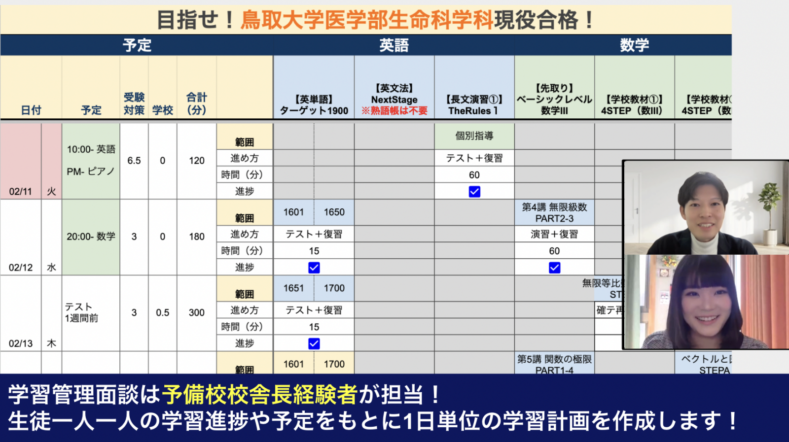 圧倒的な面倒見の良さで大学受験のすべてを「トータルコーディネート」するのがコンセプトのオンライン専門塾です。 授業は動画や参考書で受講しますが、必ず授業後に専任プロ講師が振り返り面談を実施。次の授業では前回の復習テストが欠かさずあり、生徒の状態を細かく把握しながら指導してきます。 振り返り面談が当日...