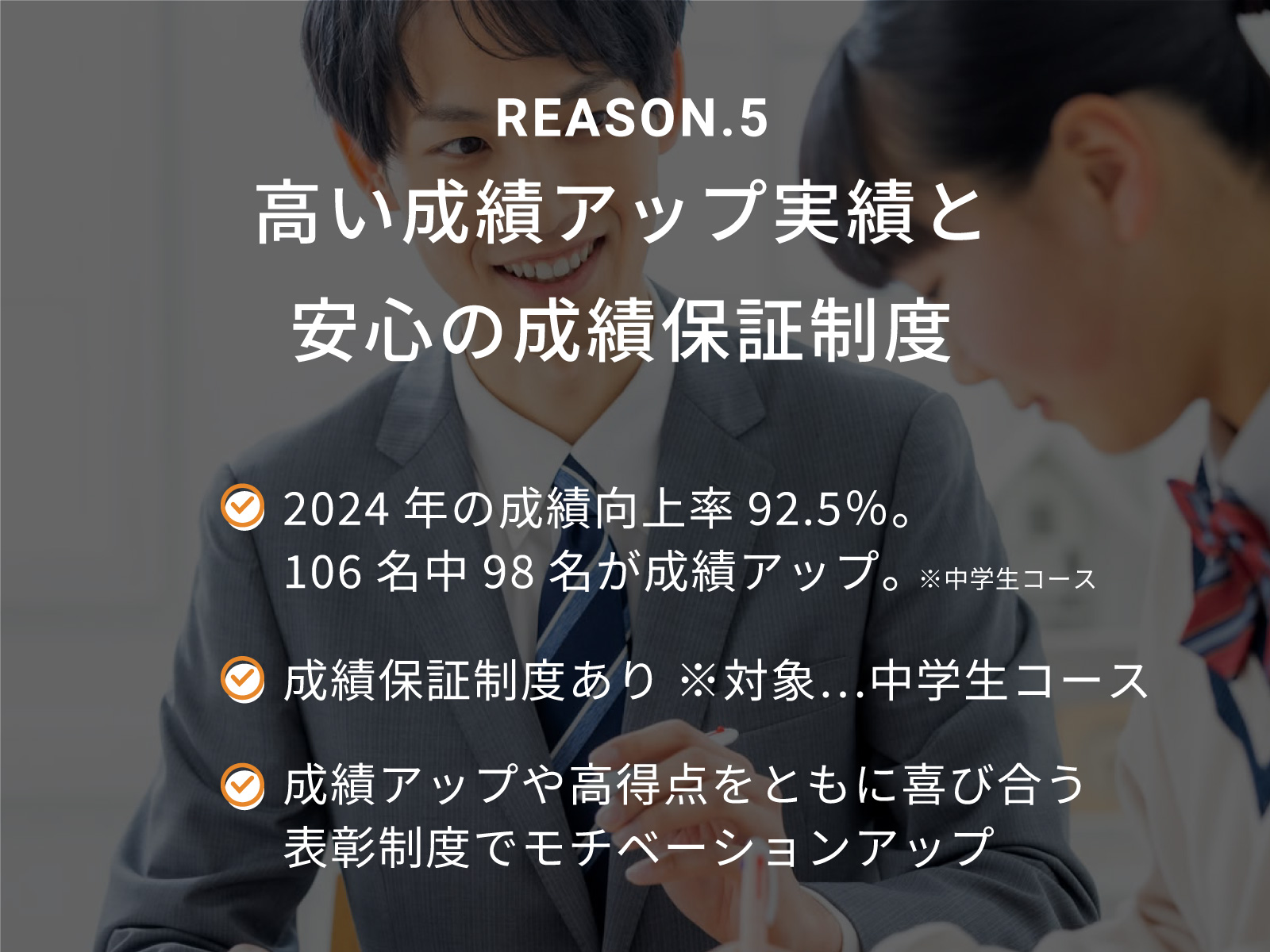 成績向上率92.5%(2024年実績)、人気の秘訣は「結果力」!苦手教科30点UPさせませんか?