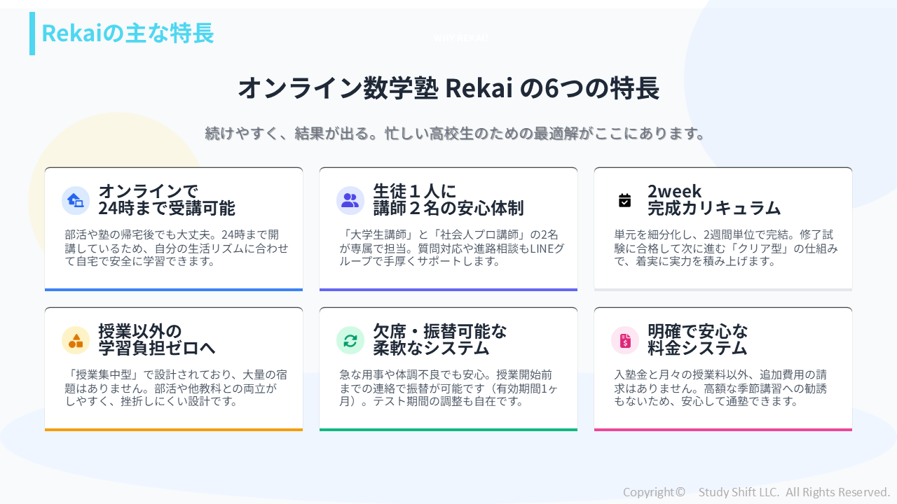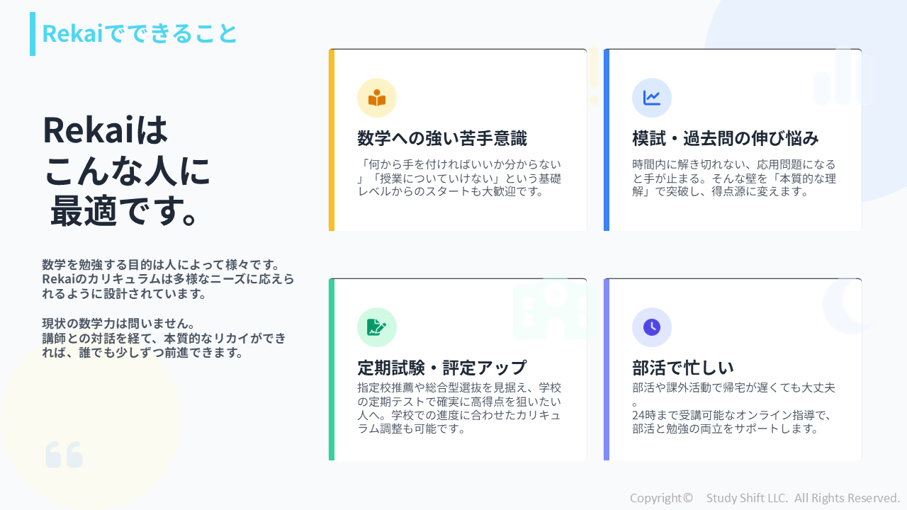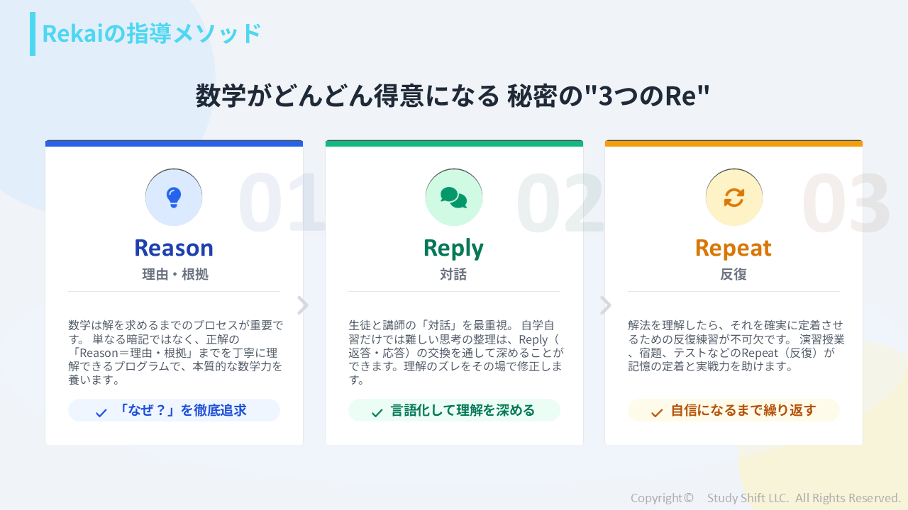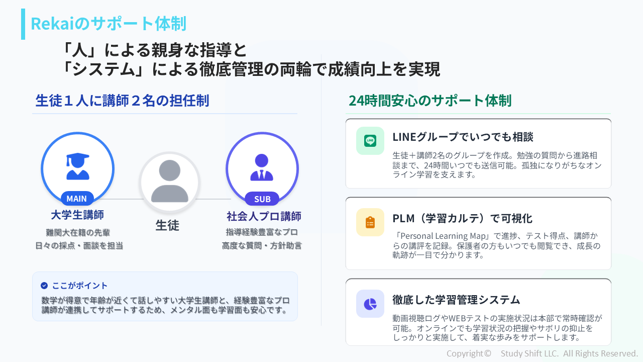 「オンラインでもちゃんと成績が伸びる」 それを実現するために、Rekaiではコロナ禍以降のオンライン塾事業で培ってきた様々な工夫を取り入れています。 教材の質や構成、講師陣のサポート体制など多くのこだわりがありますが、最も成績向上に貢献しているのは「テストと面談で丁寧な確認をしている」ことです。 動...