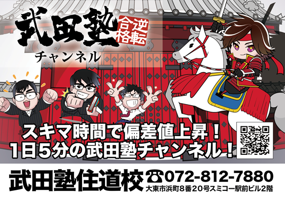 逆転合格の武田塾住道校です。 武田塾住道校は公立、私立の中学生にも対応しております。 武田塾は「日本初!授業をしない武田塾」とうたっていますが なぜ授業をしないかというと、授業はあくまでも理解するためだけのものであって 授業を受けるだけでは成績は伸びないからです。 成績を伸ばすには授業を受けた後にき...