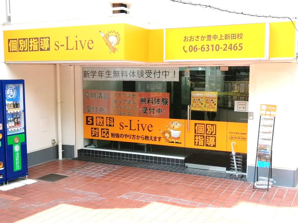 こんにちわ(^^♪ 豊中市上新田に2019年に開校したs-Liveおおさか豊中上新田校の堀内と申します。 当校は学習塾ですが、プログラミングコースや、無料ストリートダンスコースなど様々な事を同時に行っている塾です。 小学生は勉強が楽しくなるようにこだわり。 中学生は定期テストの点数にこだわり、さらに志望校に合格で...
